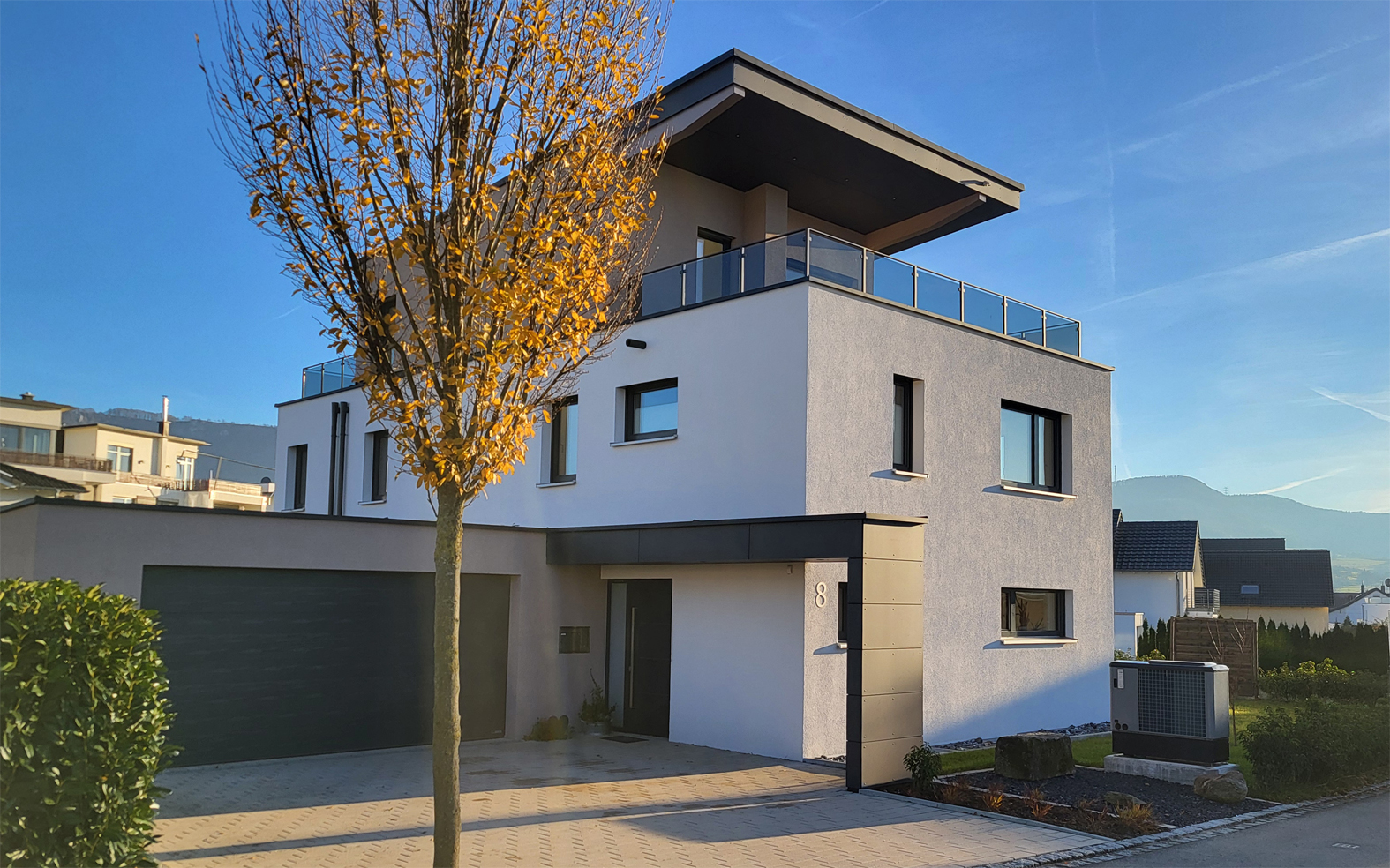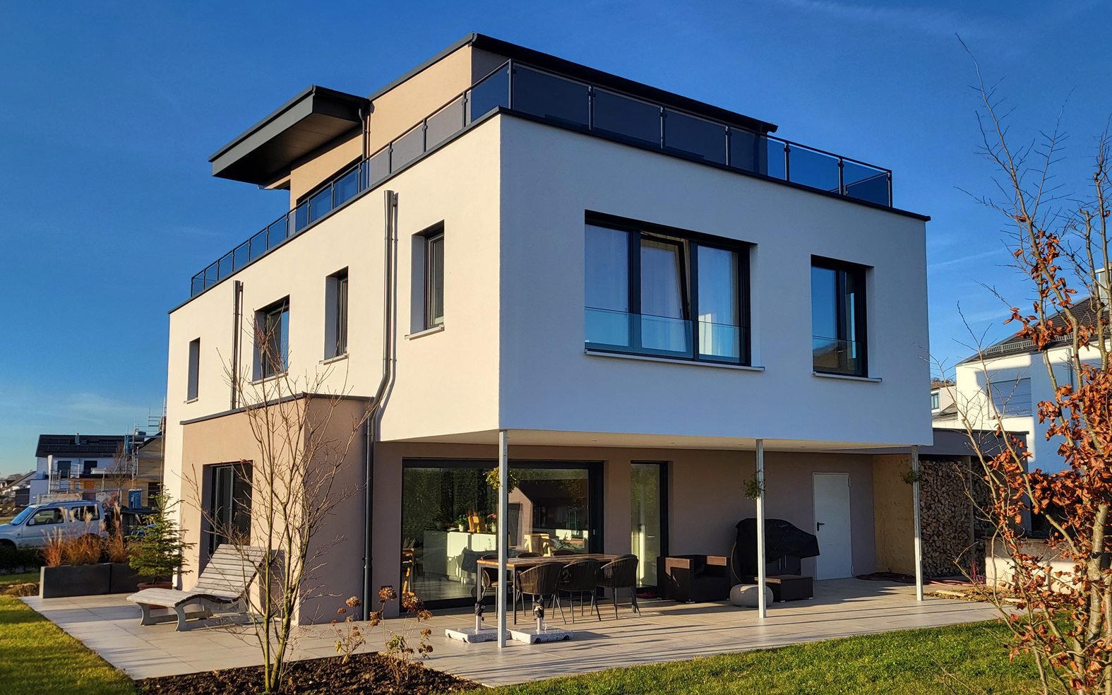 Eine geradläufige Treppe sollte es sein und ganz wichtig: die Aussicht auf den Weinberg vom Dachgeschoss - dazu noch ein Sitzfenster, offenes Wohnen im Erdgeschoss mit Gartenbezug - und das ganze im Holzbau.
