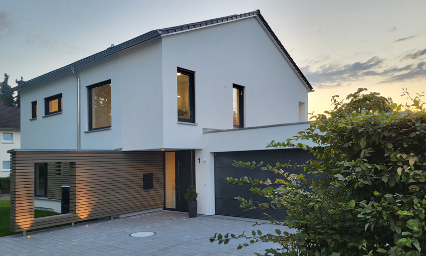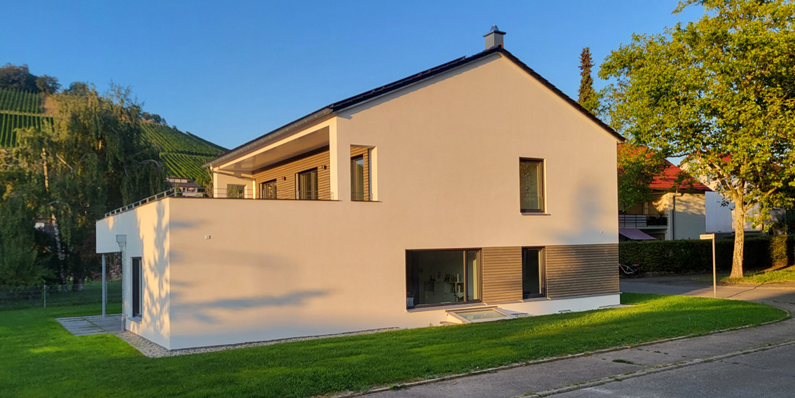 passend zur Lage verbindet dieses Wohnhaus klare Formen mit natürlichen Elementen. Ermöglicht Ausblicke, aber auch Einblicke. Bietet Rückzugsmöglichkeiten im Inneren wie im Außenraum und spannende Raumerlebnisse in den Kinderzimmern.