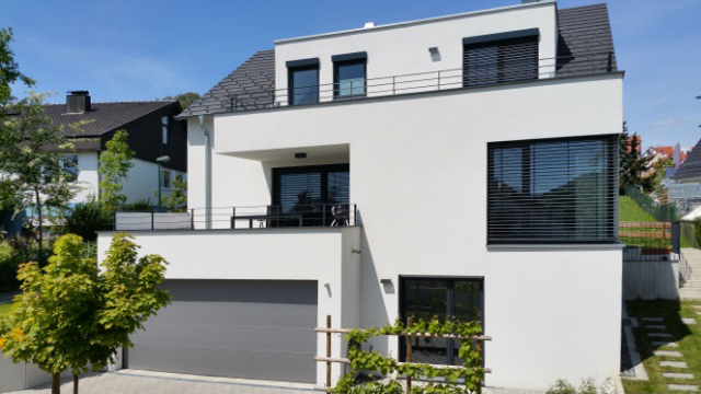 Von der Dachterrasse hat man einen grossartigen Ausblick über die Gemeinde bis hin zum Albtrauf. Ebenfalls an den Ausblicken orientiert sich die grosszügige Über-Eck-Verglasung im Erdgeschoss.