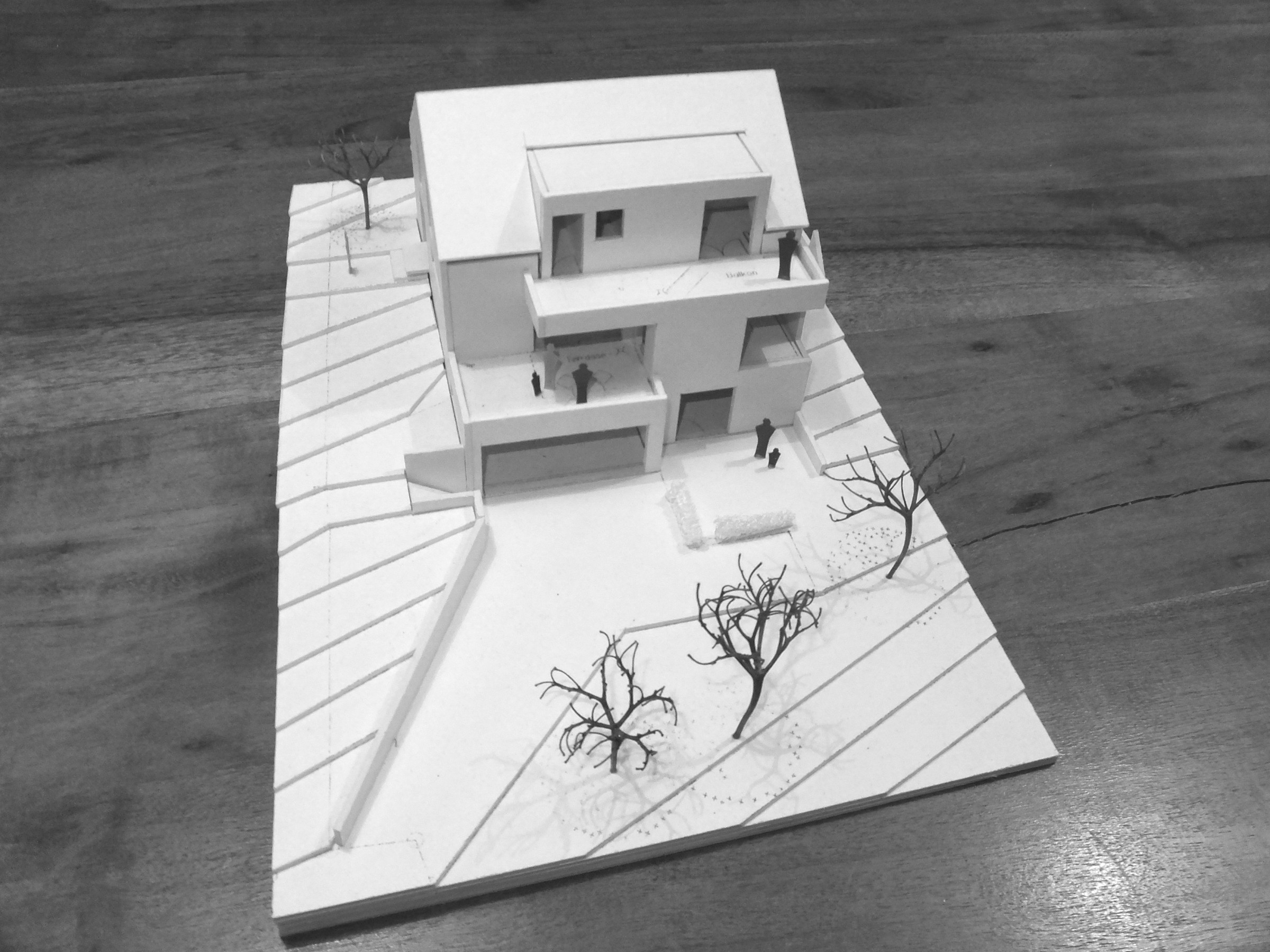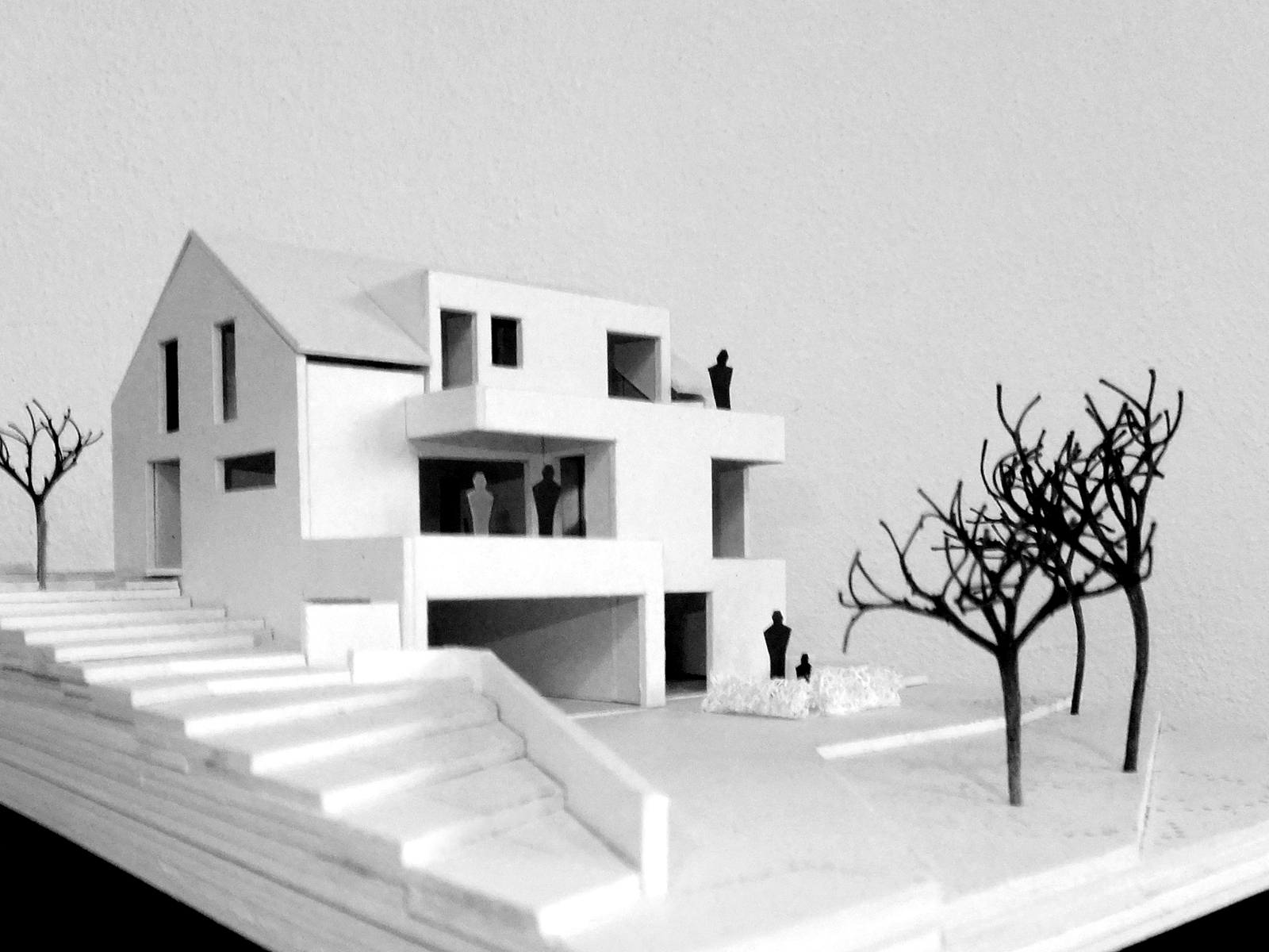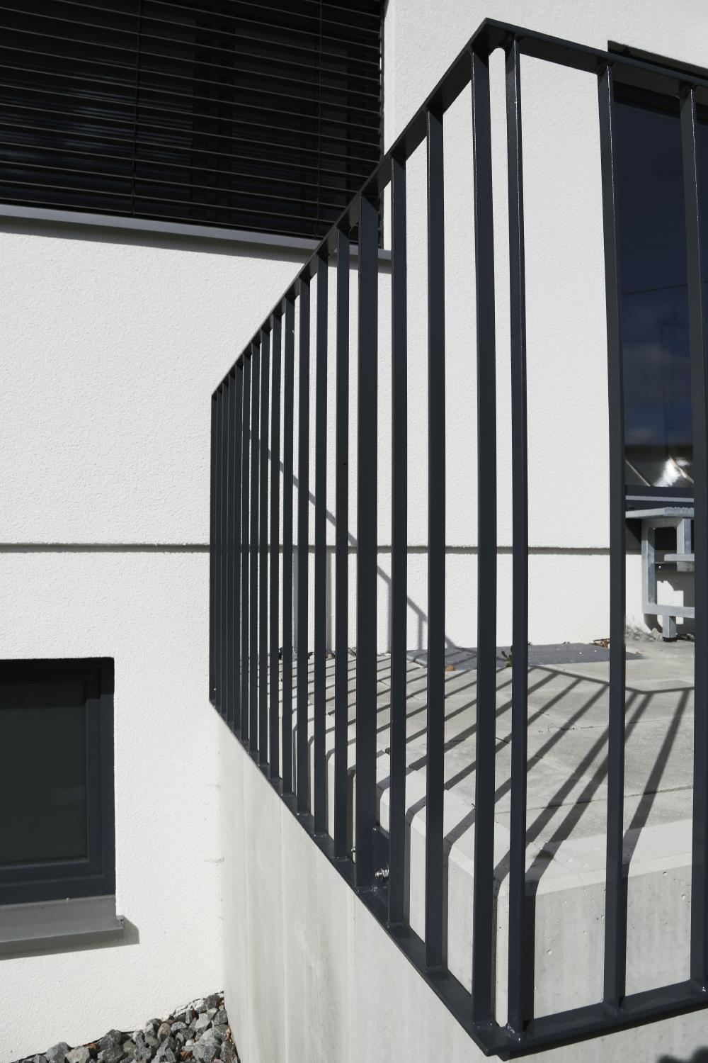 Am Modell konnten die Bauherren sehr früh prüfen, wie ihr Eigenheim aussehen könnte. Modern, klassisch, kubisch, zeitlos. Diesem Credo folgt auch die Detaillierung der Geländer sowie das Farbkonzept in weiss und anthrazit.